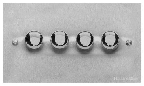 Our 4 Gang Dimmer Switch 250 Watts (compatible with halogen/ incandescent bulbs) from the Richmond Elite Low Profile Range in our Satin Chrome finish allows you to adjust the brightness of a light instead of just turning it on and off.