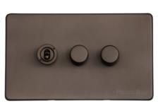 Our 2 Gang TED Dimmer Switch (compatible with LED lamps) from the Vintage Range in our Matt Bronze finish allows you to adjust the brightness of a light instead of just turning it on and off.
