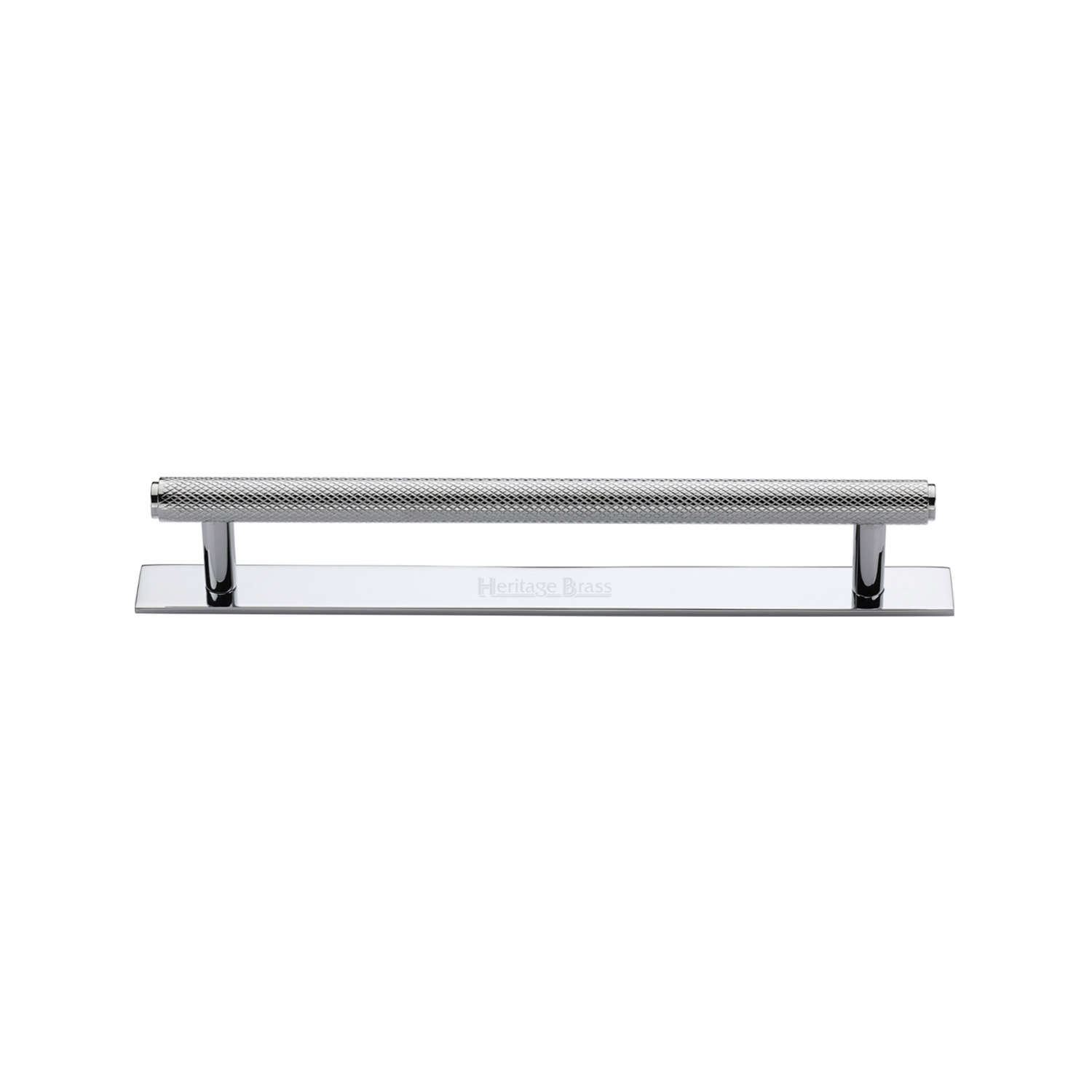 Heritage Brass Cabinet Pull Knurled Design with Plate 128mm CTC Polished Chrome Finish